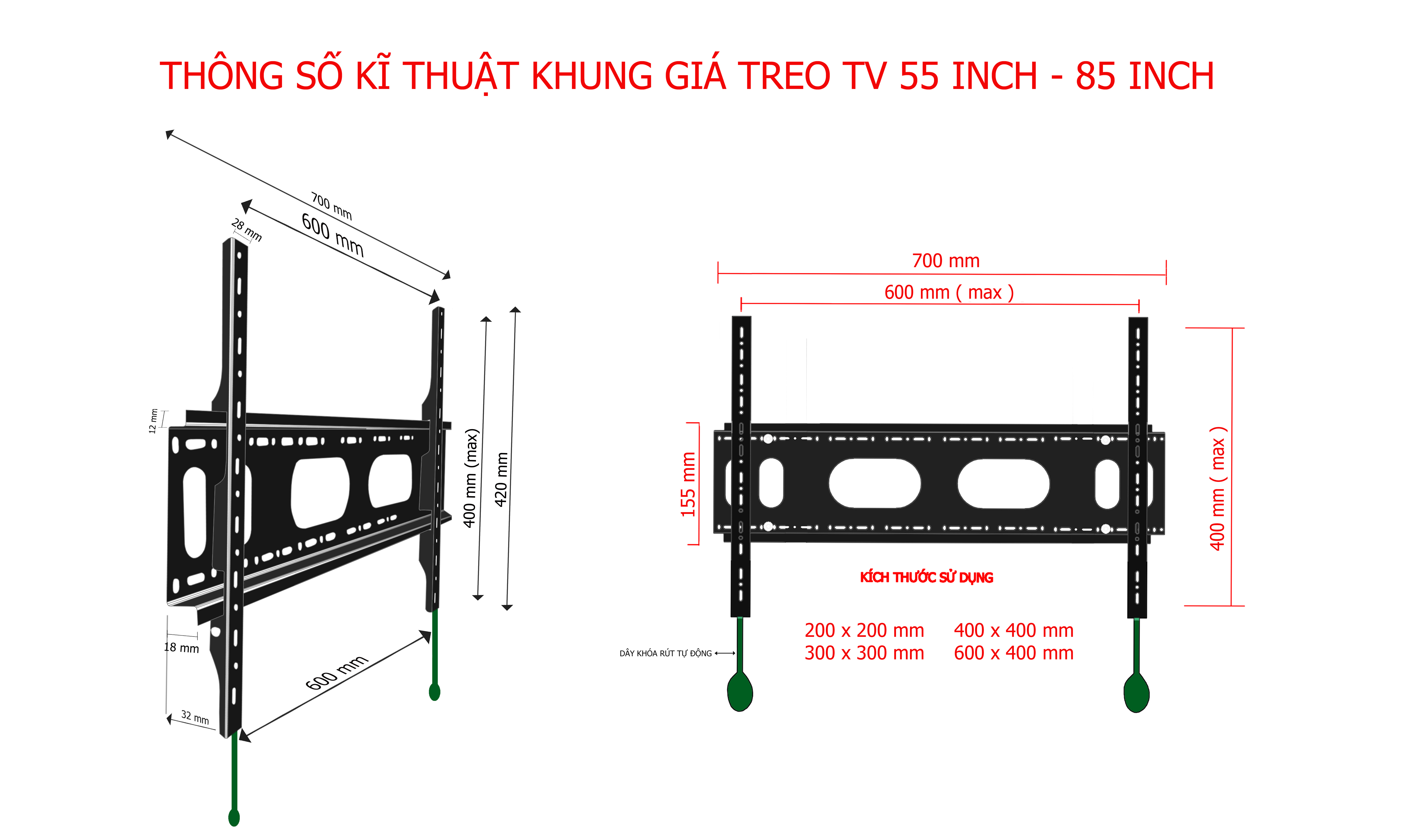 KHUNG TREO TV NGHIÊNG 65 INCH